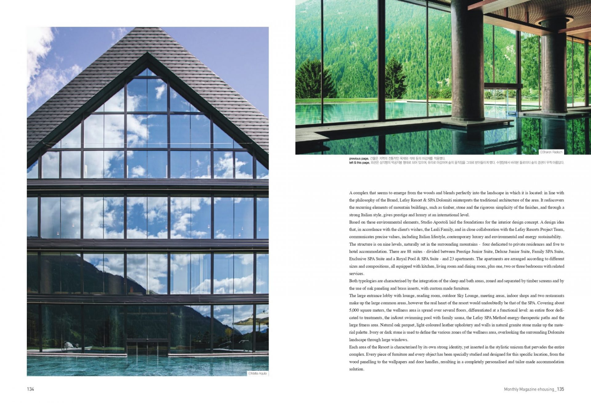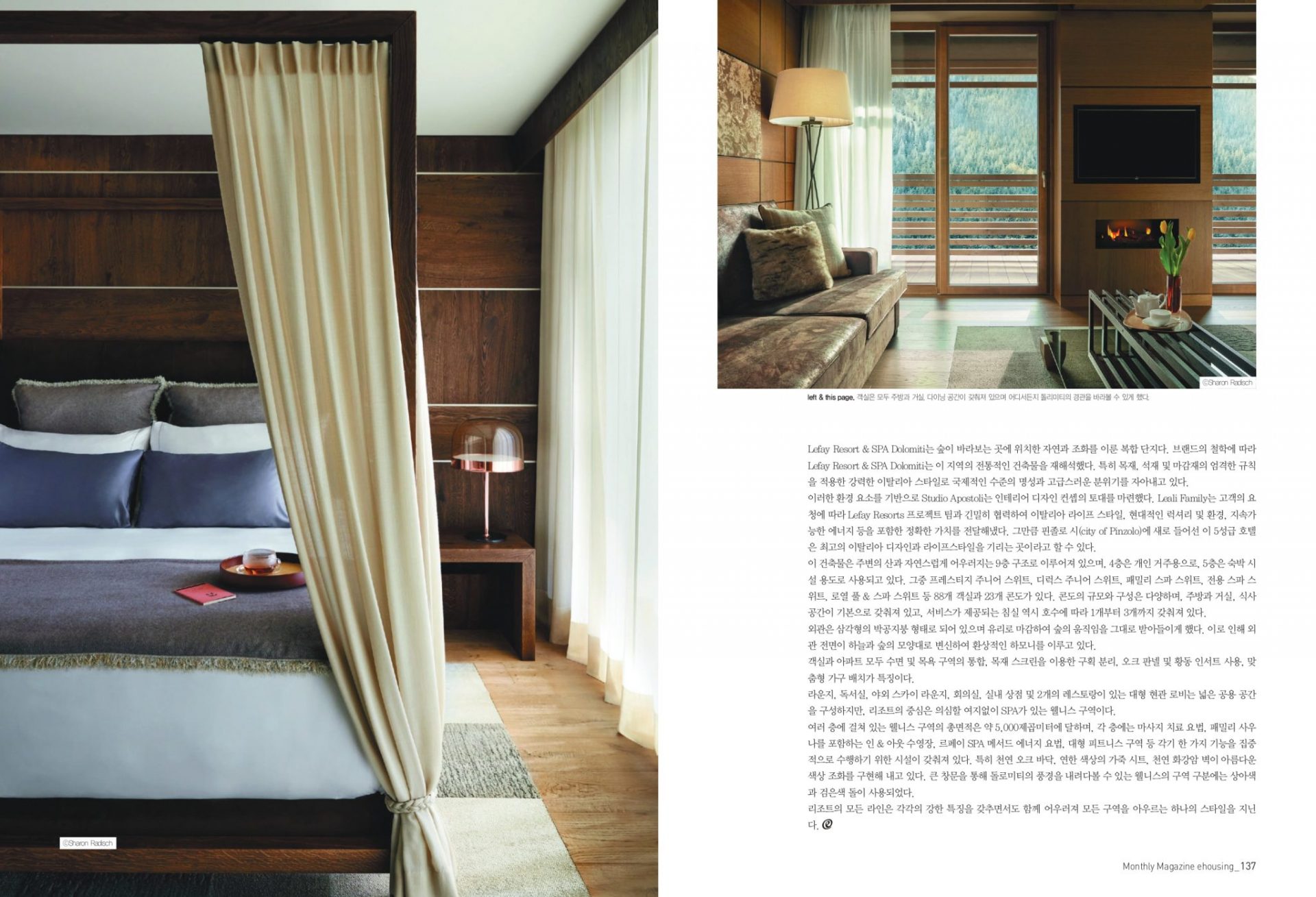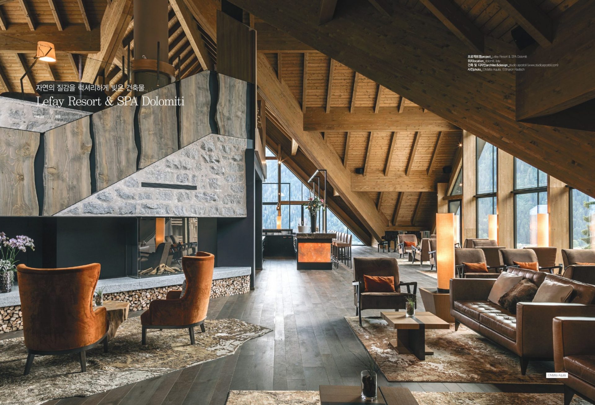 In the April issue, the famous magazine based in Seoul and specializing in interior design, publishes an 8-page article on Lefay Resort & SPA Dolomiti, the 5-star luxury Hotel, whose interiors have been designed by Studio Apostoli.